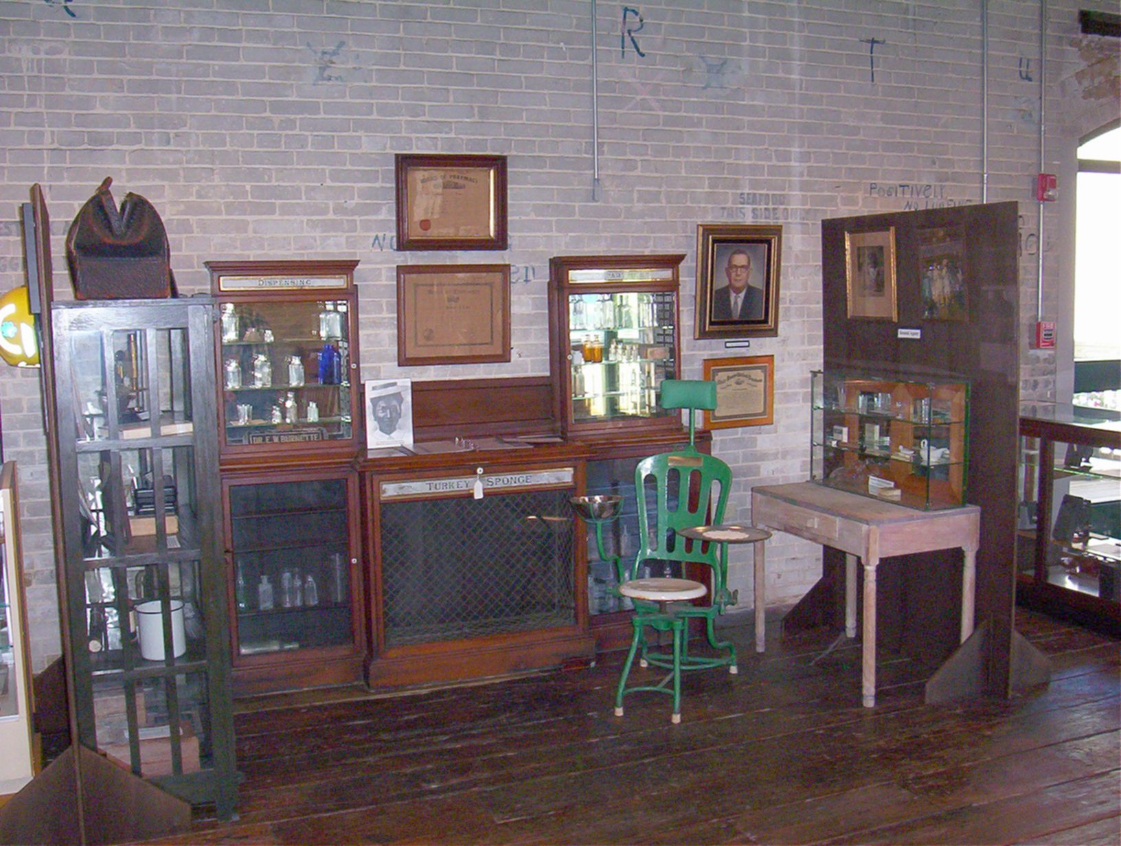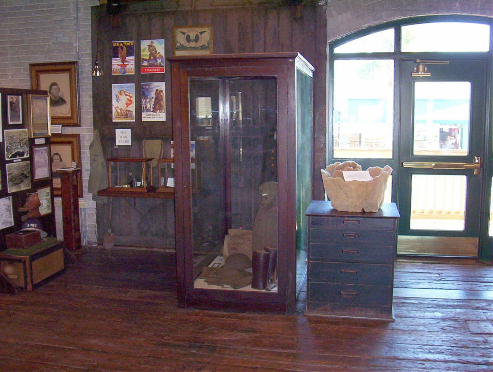 | After leaving the office/gift shop we will tour the depot's warehouse. Here all the freight shipments were stored. Now it is used to display the artifacts collected by the Tarpon Springs Area Historical Society. The next few pictures will give you an idea of what you will see as you tour the warehouse. | ||||||||